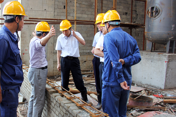 ? ? 10月1日上午,在金寨公司現場管理人員陪同下,紀總一行從進廠道路開始,對整個建設工程進行了全面檢查,并對存在的問題現場進行了研討,明確了意見。