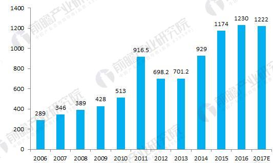 圖表5:2006-2017年中國危險廢棄物處置量情況(單位:萬噸)