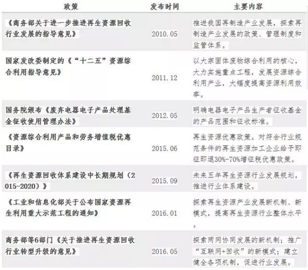 再生資源回收利用的政策梳理