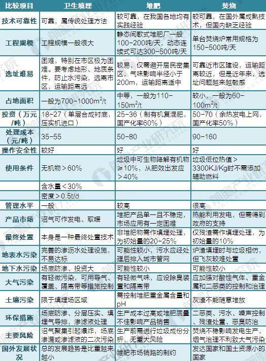 圖表1:三種主要垃圾處理方式對比
