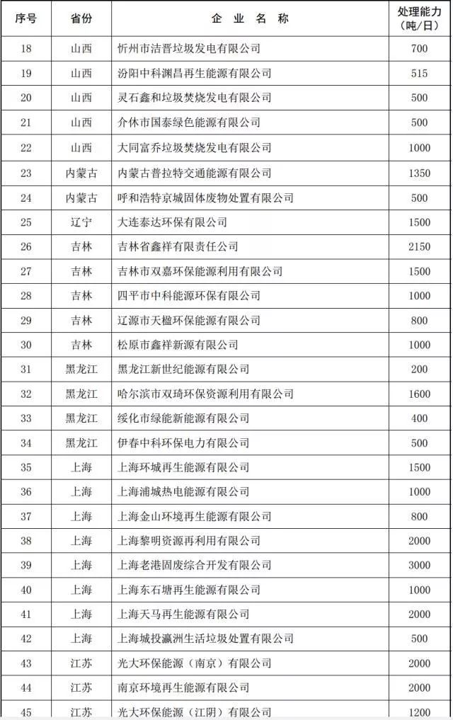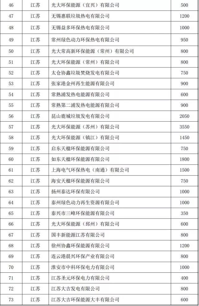 2016年底全國在運生活垃圾焚燒發電廠清單